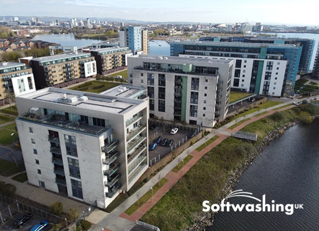 Softwashing UK were contracted to clean the large multi-storey apartment blocks at Prospect Place.